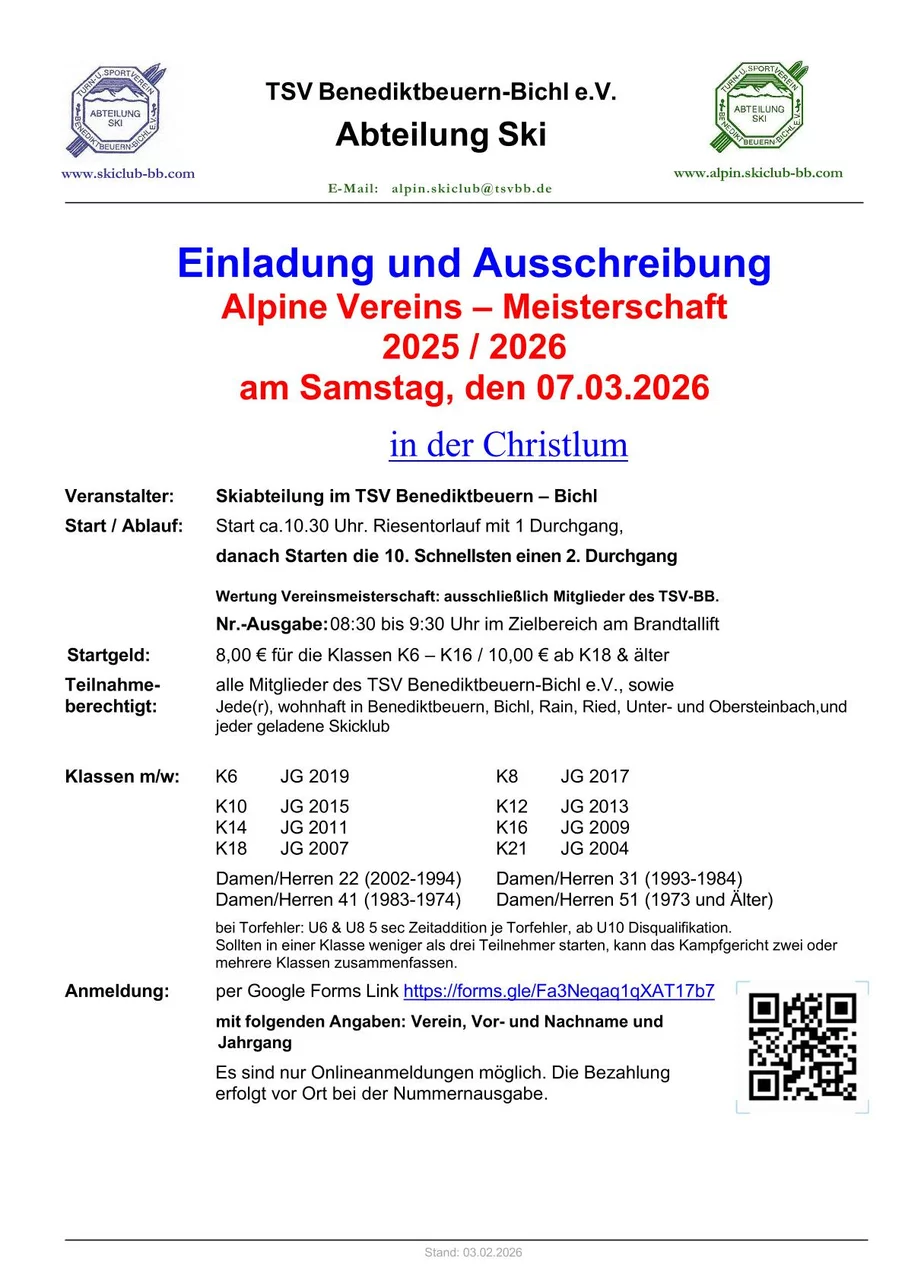 Nähere Infos gibt es beim Sportwart!